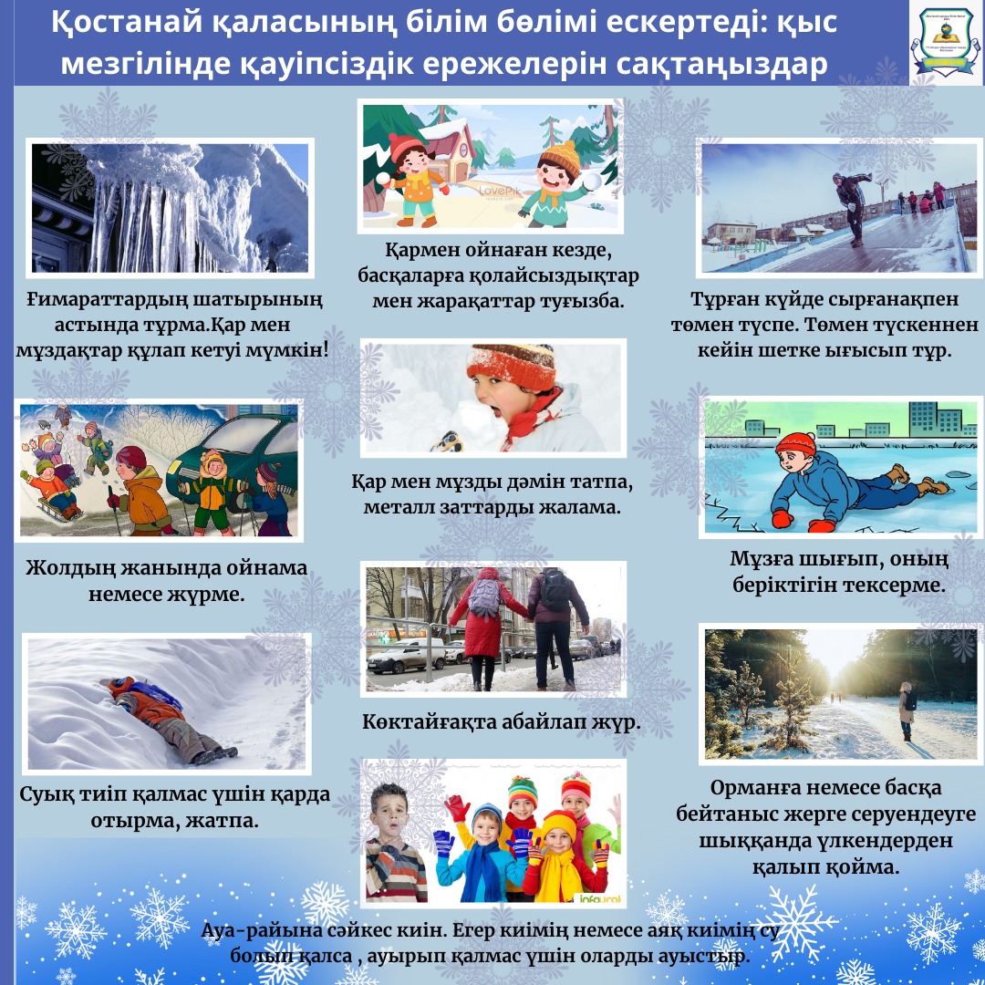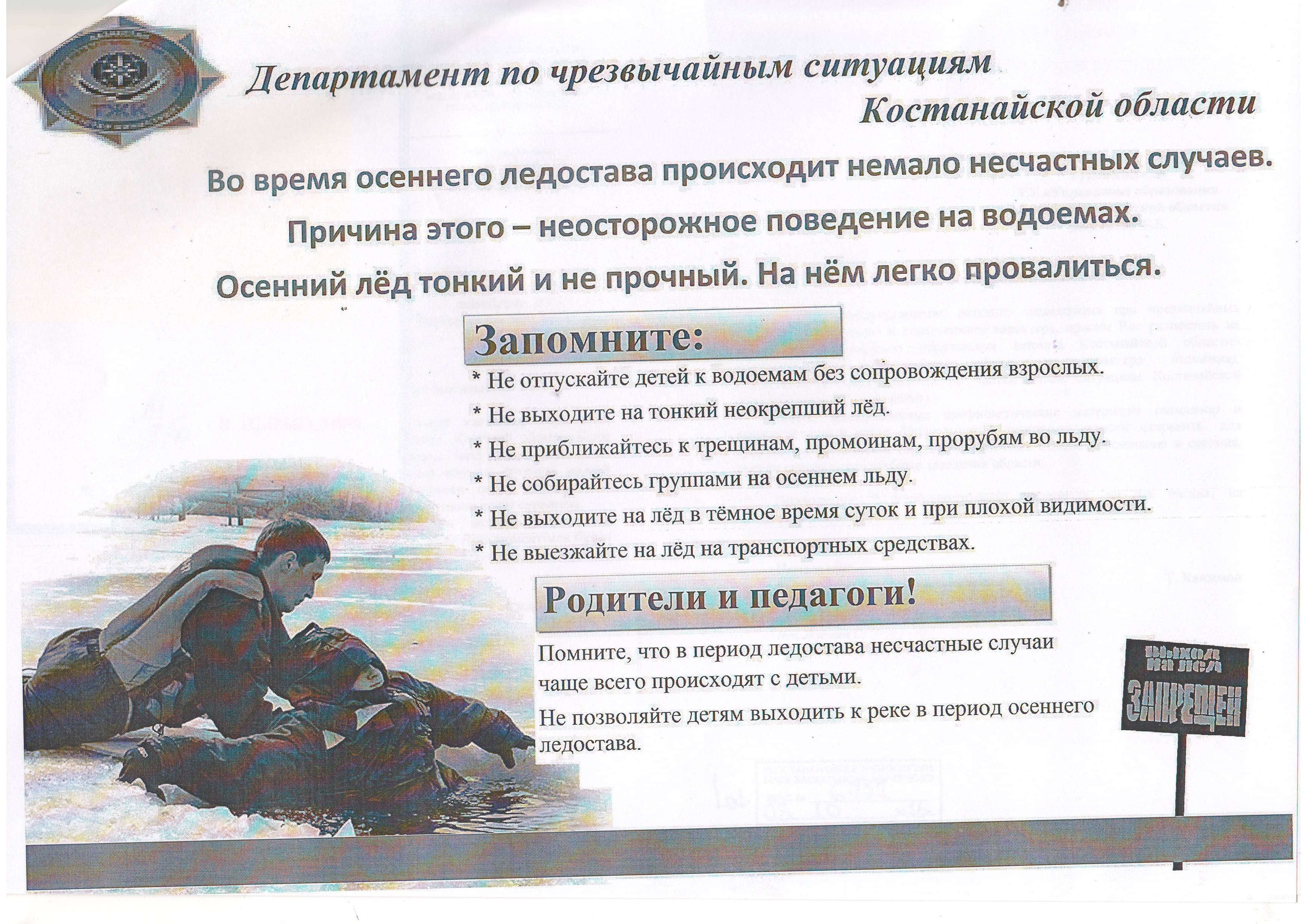 Күзгі-қысқы кезеңде су айдындарында қауіпсіздік ережелерін сақтамау жиі адамдардың өліміне және жарақат алуына әкеп соғады. Қараша мен желтоқсан аралығында, яғни тұрақты аяз басталғанға дейін мұз қатпайды. Кешкі немесе түнгі суықта қатқан мұз берік болса да, күндіз ол белгілі мөлшерде еріп, өз тығыздығын жоғалтады. Мұз қату кезеңіндегі қауіпсіздік мәселелеріне жауапкершілікпен қараңыз!