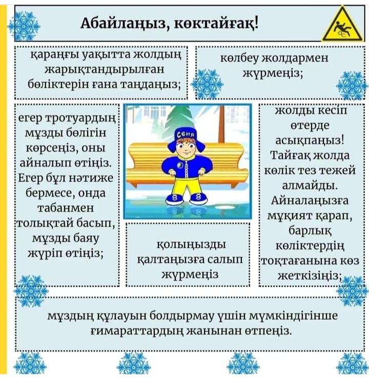 2. Балаларды жарақаттанудың алдын-алу негіздеріне жүйелі түрде оқыту. Сонымен қатар, баланың бойында қорқыныш сезімдерін дамытпау керек, керісінше, егер сіз өзіңізді дұрыс ұстасаңыз, қауіптің алдын алуға болатынын ескерту қажет;