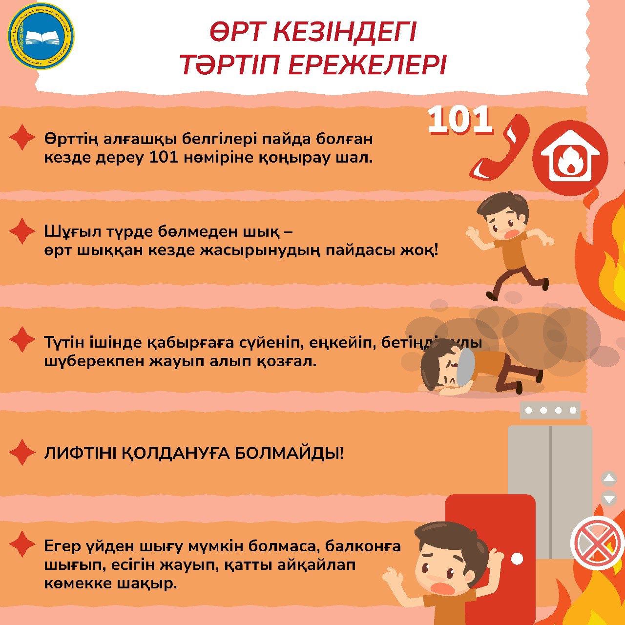 - өрт қауіпсіздігі талаптарын сақтаңыз, тұрмыстық құралдардың, оның ішінде электрмен қыздырғыштардың, басқа электр жабдықтарының, пешпен жылытудың жарамдылығы мен пайдаланылуын қадағалаңыз;