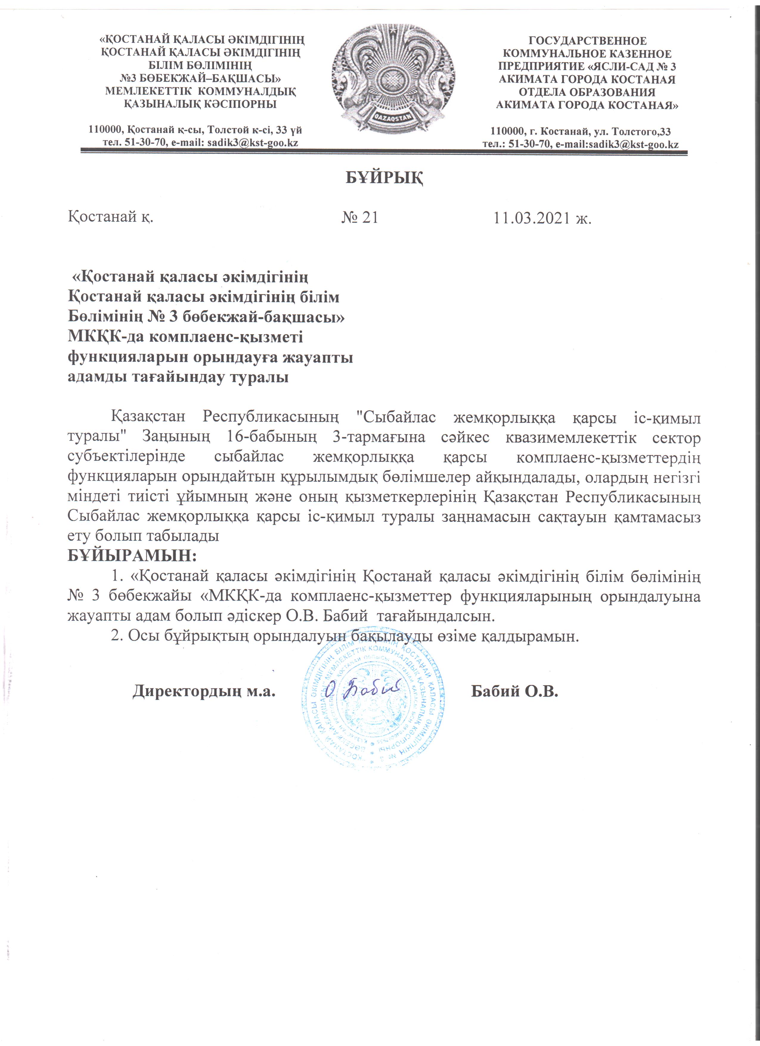 Қостанай облысы әкімдігі білім Басқармасының «Костанай қаласы бiлiм бөлімінің «№3 бөбекжайы» коммуналдық мемлекеттік қазыналық кәсіпорны