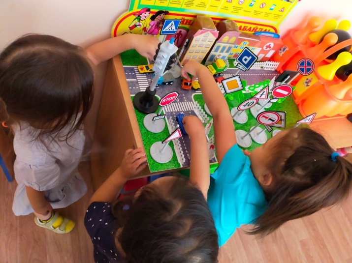 бүгін ересек "Жұлдыз" тобында жолда жүру ережелері мен қоса белгілермен де таныс болдық. Балалардан Нұрлыбек полиция қызметін атқарды.