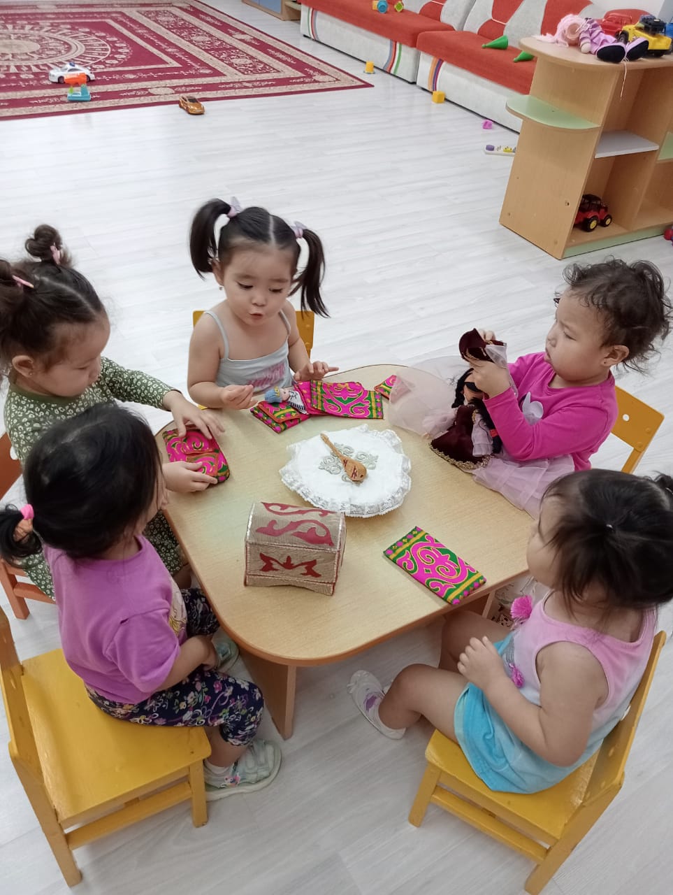 Мектепке дейінгі "Балапан " ортаңғы тобында жаңа оқу жылынан бастап "Тілге бойлау" балалардың сөйлеу құралдарының бірі іске асырылып отыр.