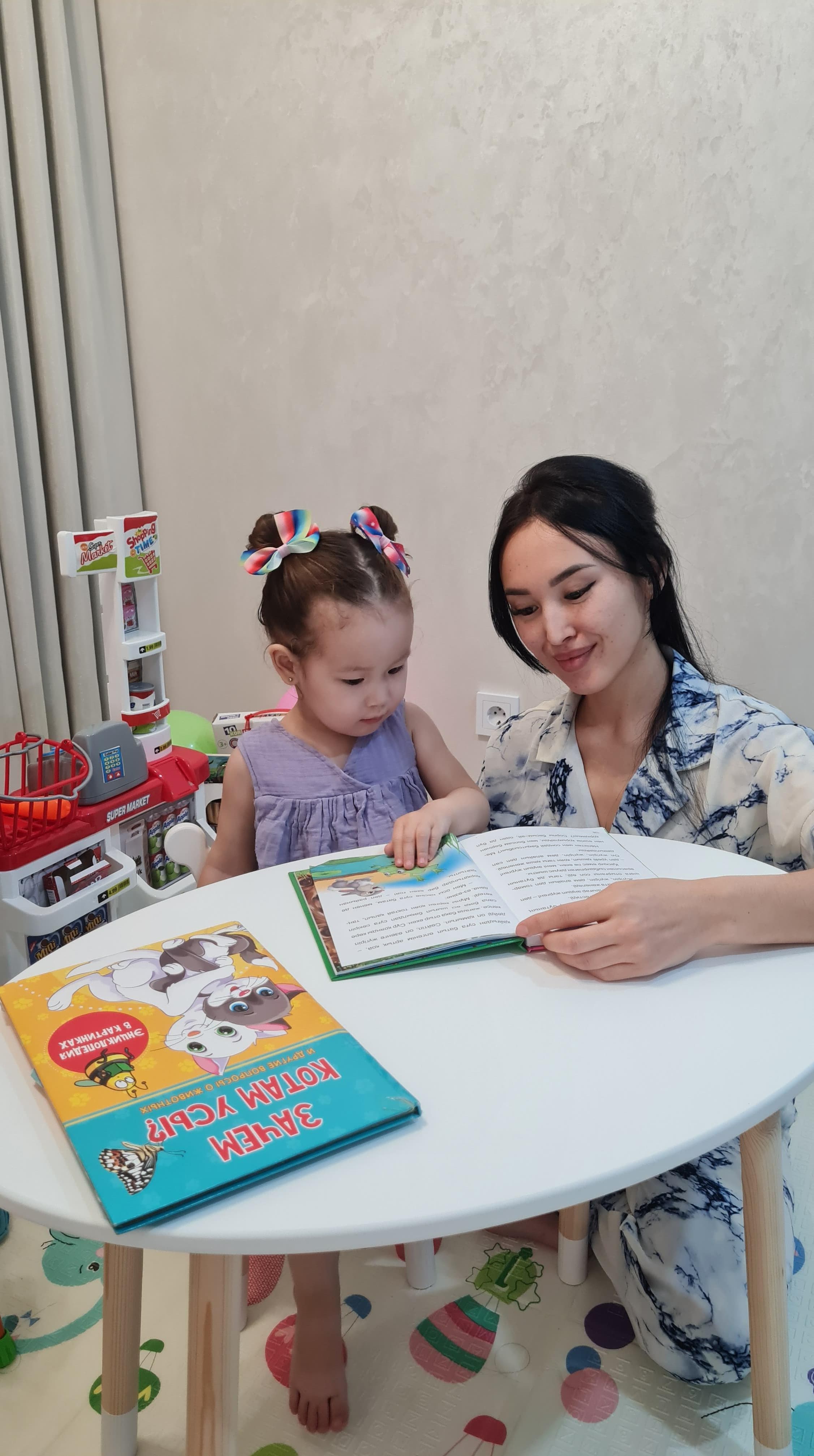 Мектепке дейінгі "Балапан" ортаңғы тобында ата-аналармен бірлесіп атқаратын жұмыс барысында "Баламен бірге кітапқа қызығушылықтарын қалай арттырамыз?" атты тапсырма берілді ата-аналарға. Кітап оқу үшін балам әлі кішкентай, бірақ мен оны кітапты сүюге баули аламын. Күніне 10-15 минуттай дауыстап оқимын, суреттерді талқылап, әңгіменің мәні мен мазмұнын талқылаймын, — дейді ата-анамыз. Баланың тілі тез шығып, сөздік қоры дамиды, бала сабырлы, төзімділікке үйренеді, кітапты сүюге және ұқыптылыққа тәрбиеленеді екен. Күнде кешке оқуға әдет қылғаныңыз жөн, — дейді ата-ана Сатыбалдина Асем.