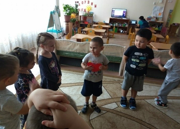 Тәрбиеленушілердің шығармашылық әлеуетін дамыту, мейірімділік, махаббат, достық, өзара көмек және толеранттылық мұраттарын ілгерілету мақсатында 7 қазан күні" жақындарымызға қуаныш сыйлайық "ұранымен"бұл әлем қандай тамаша" атты іс-шара өтті. Шеңбер "Жүректен жүрекке". Балалар бір-біріне қамқорлық жасау, бір-бірін қорғау, ойыншықтармен бөлісу туралы айтты.