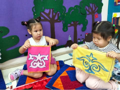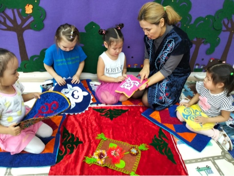 Ұлттық тәрбие рухани уыз -демекші мектеп жасына дейінгі балаларды қазақтың ою өрнек түрлерімен таныстыру мақсатында ортаңғы "Көбелек" тобы тәрбиеленушілеріне оюдың түрлерін көрсете отырып, әр оюдың өз атаулары болатыны айтылып көрсетілді.