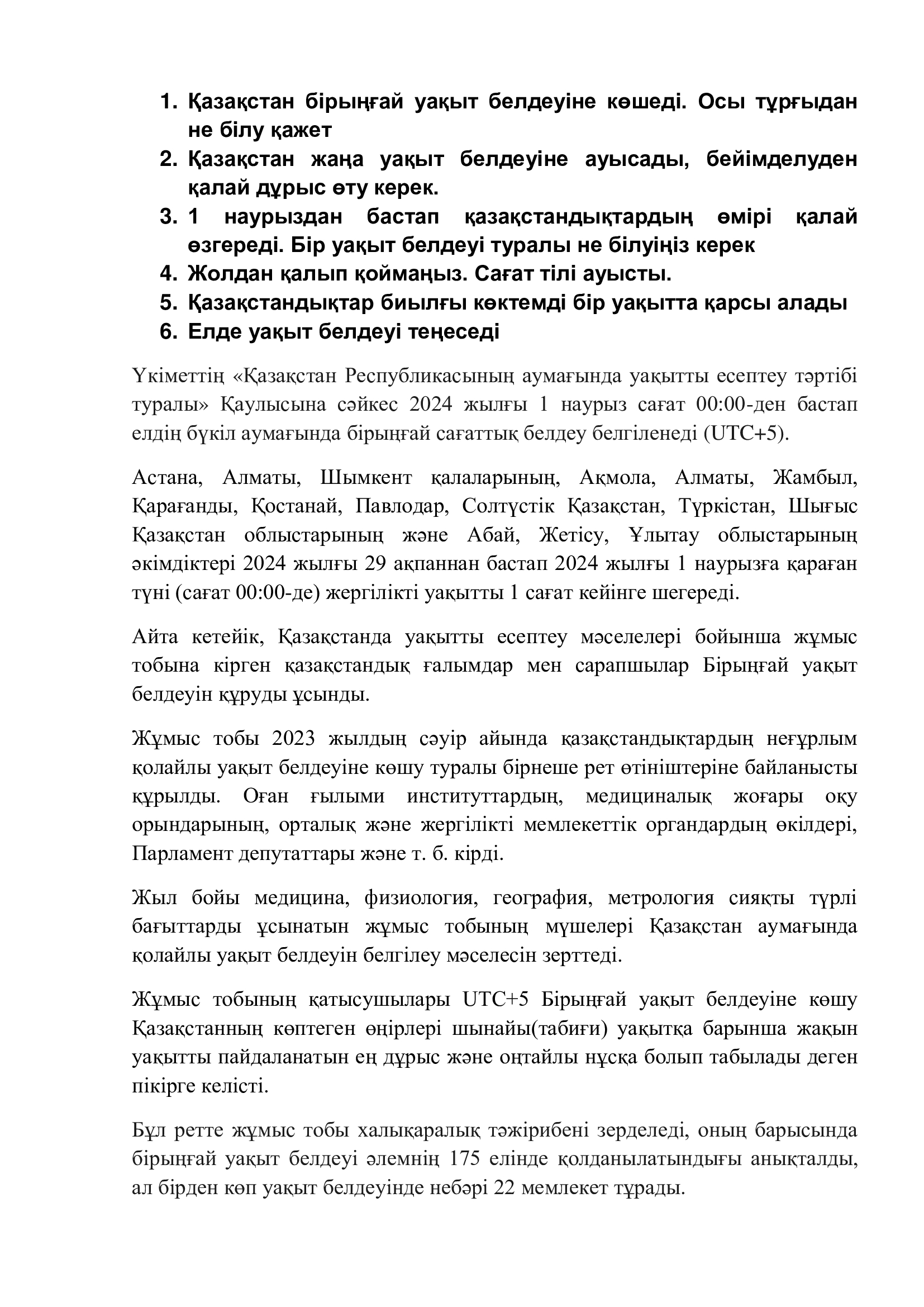 Қазақстан бірыңғай уақыт белдеуіне көшеді. Осы тұрғыдан не білу қажет