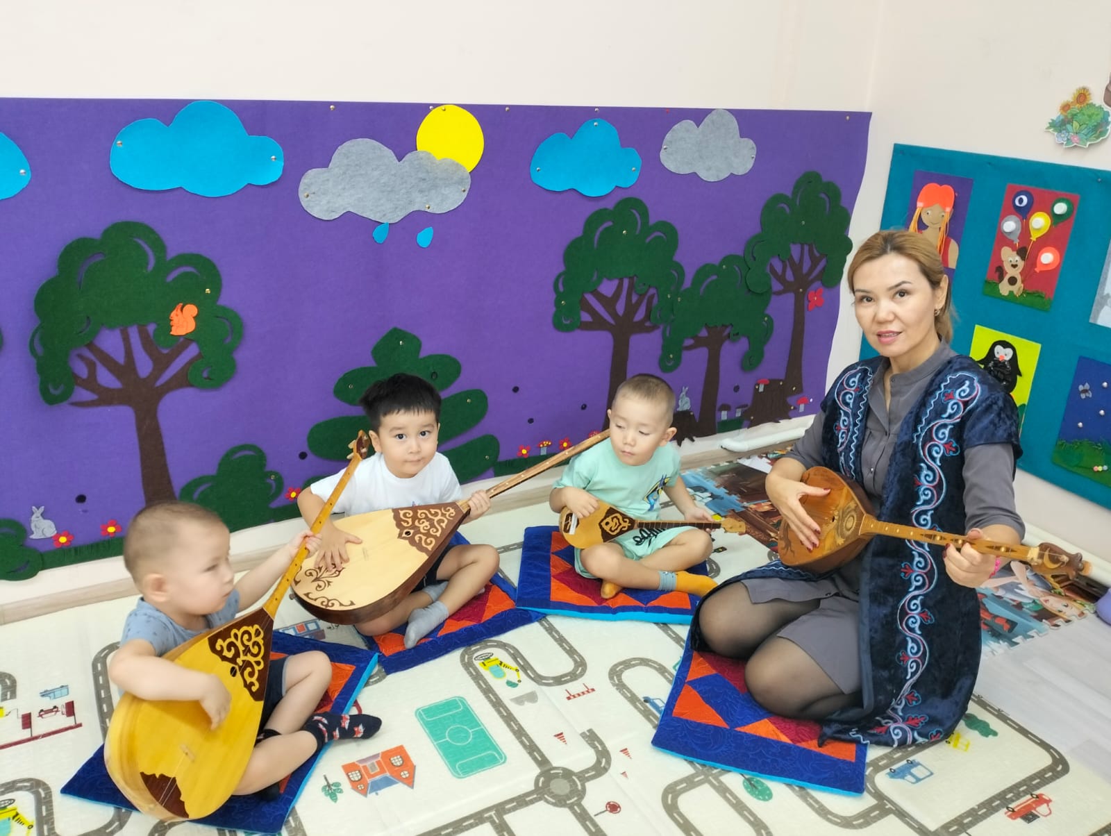 Ортаңғы Көбелек тобы тәрбиеленушілеріне домбыраның өзімен, сыңғырлаған үнімен, әр түрлі күйлер әуенін тыңдата отырып таныстырдық.