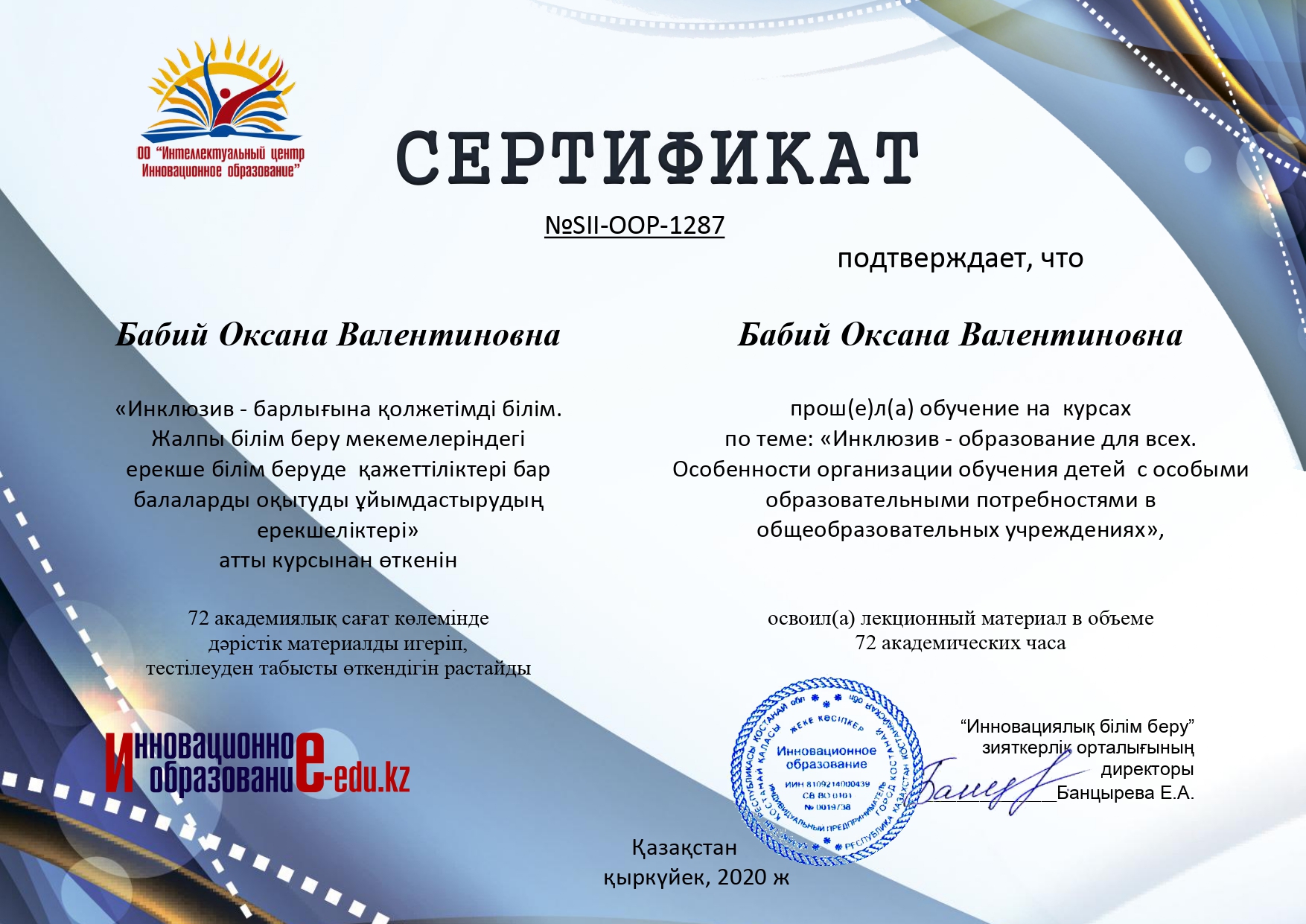 Бабий Оксана Валениновна