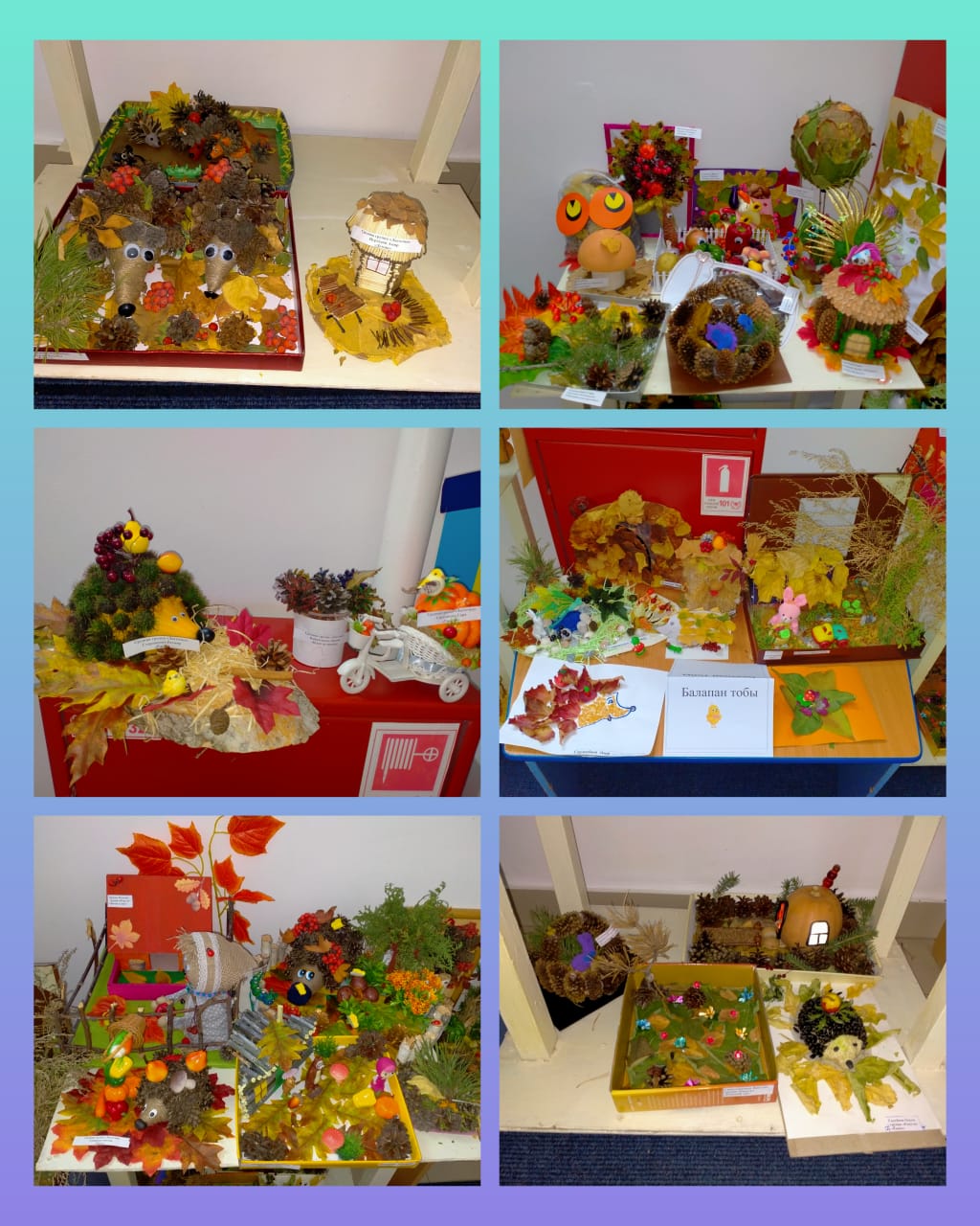 В своих работах участники использовали разные природные материалы – шишки, желуди, листья, веточки, овощи, фрукты, ягоды. На выставке были представлены лесные композиции, осенние сказки, игровые ситуации, игрушки. В каждой работе прослеживалась творческая индивидуальность и фантазия каждого ребенка. Все работы оригинальны, неповторимы и интересны.