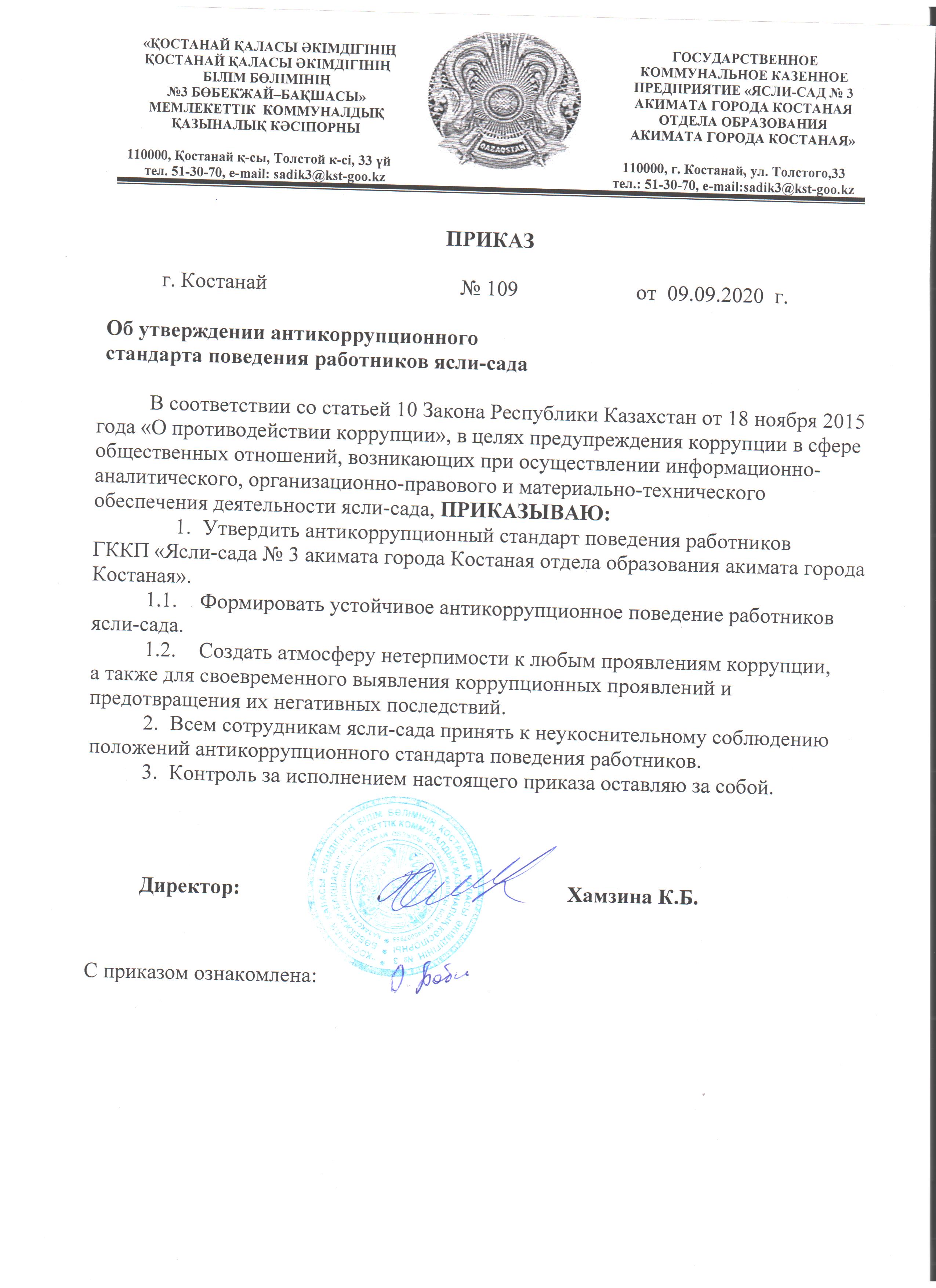 Коммунальное государственное казенное предприятие «Ясли-сад № 3» отдела образования города Костаная» Управления образования акимата Костанайской области