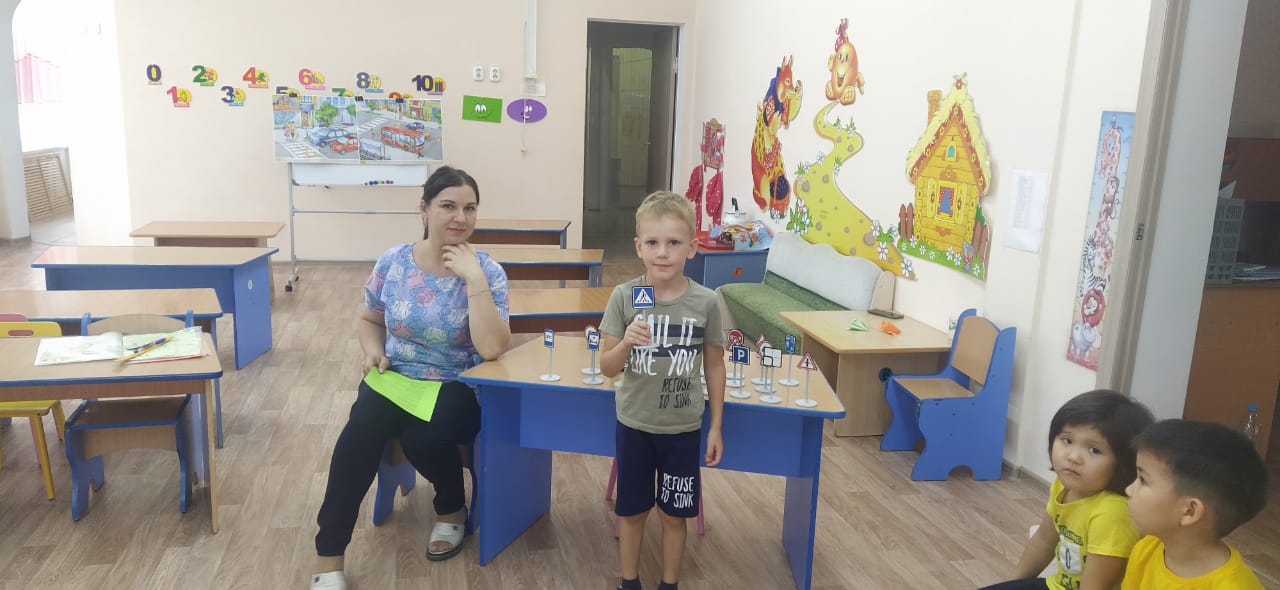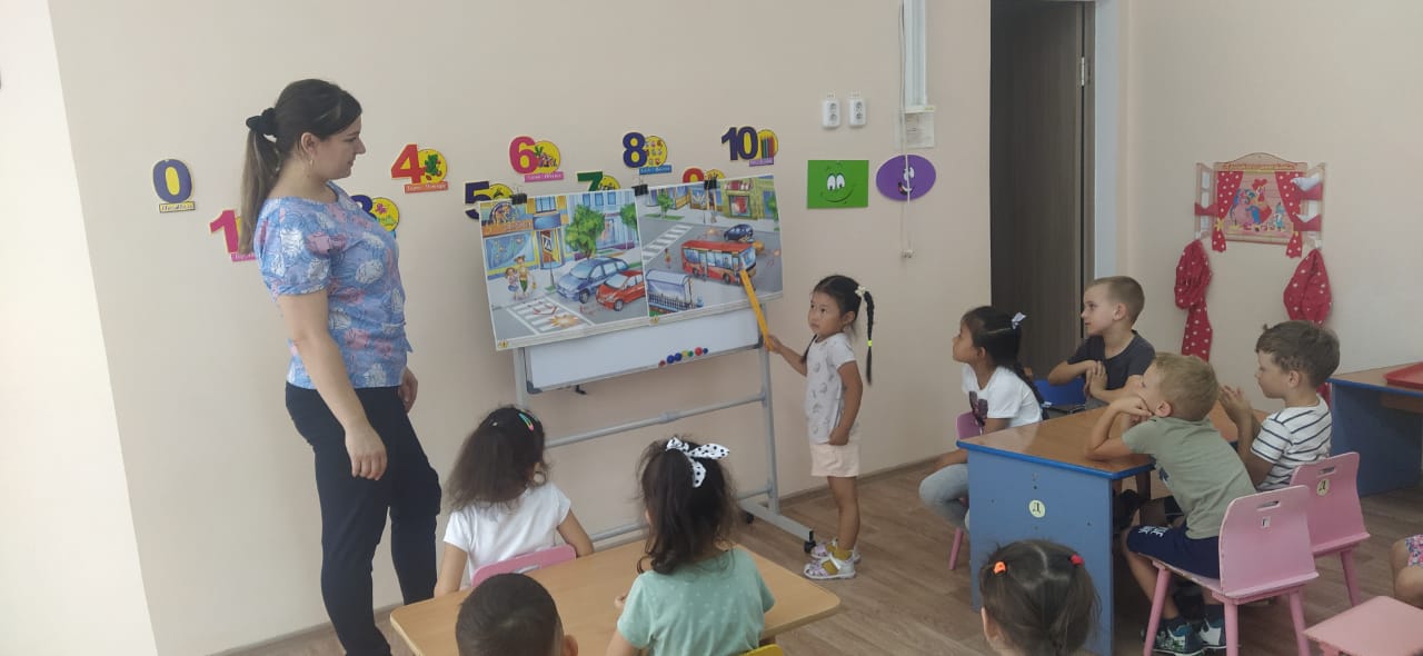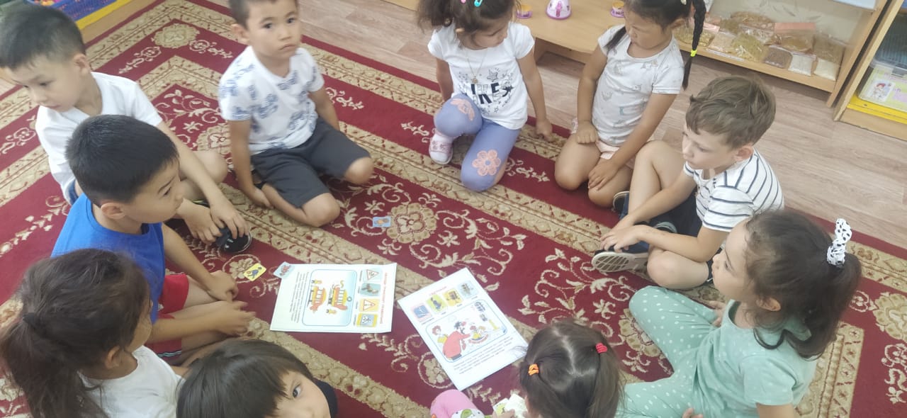 - Старшая группа «Жидек» с государственным языком обучения работает над реализацией Проекта по ранней профориентации детей по теме: «Юные помощники инспектора дорожного движения»;
