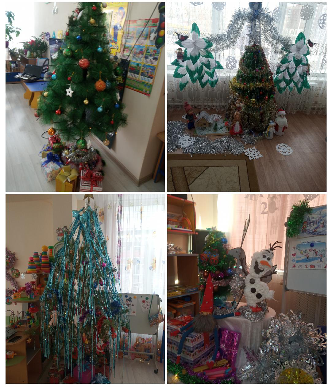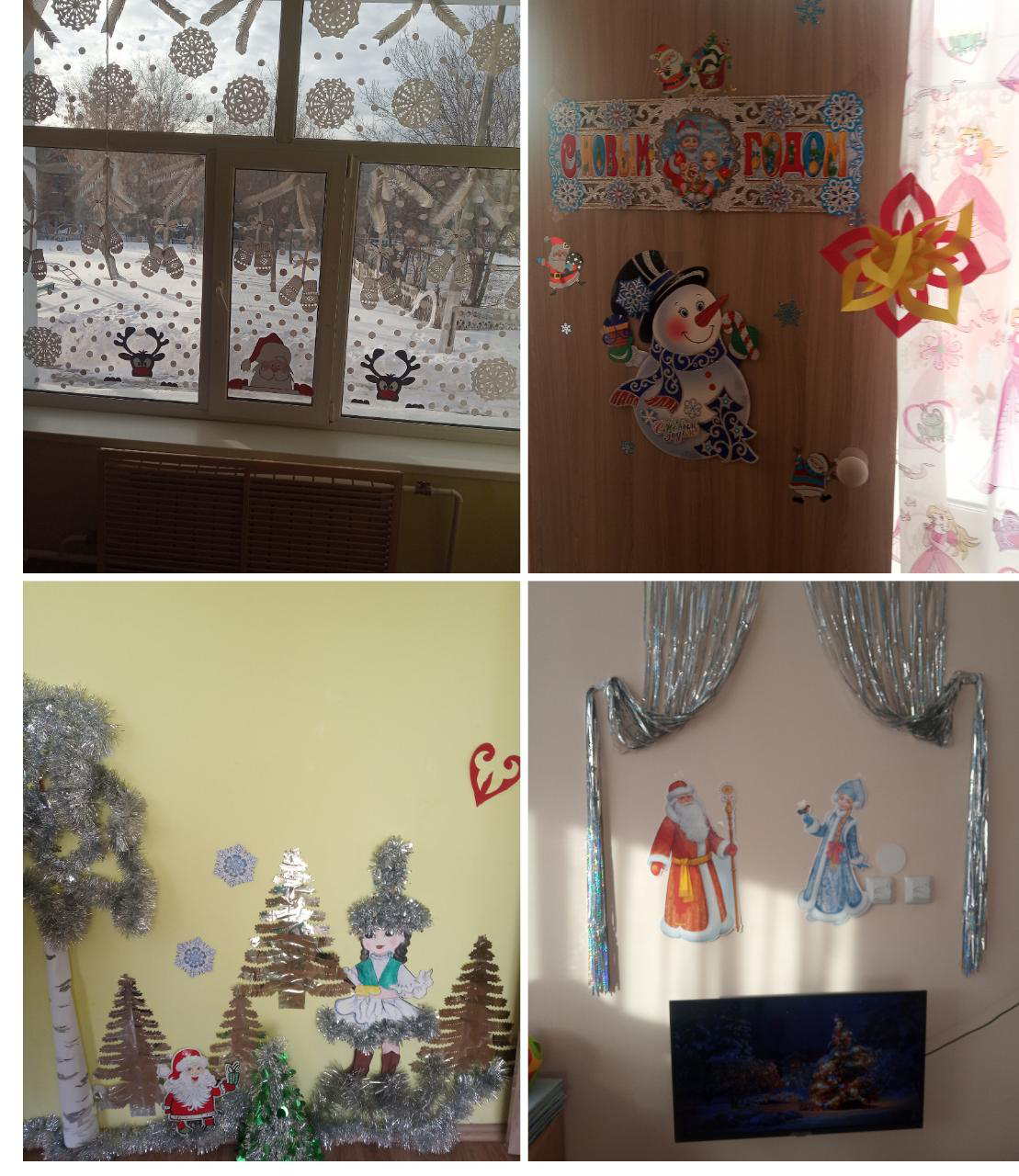 Дети и воспитатели украшали группы своими руками, сделав гирлянды, снежинки, оформив окна. Благодаря этому они получили огромное удовольствие от процесса совместной работы. Без внимания не остались и родители они с удовольствием помогали вырезать нам снежинки и украшения на окна. Все группы радовали глаз, в них царила зимняя, сказочная атмосфера. И как же приятно было осознавать, что такую сказку мы создали все сообща и своими руками.