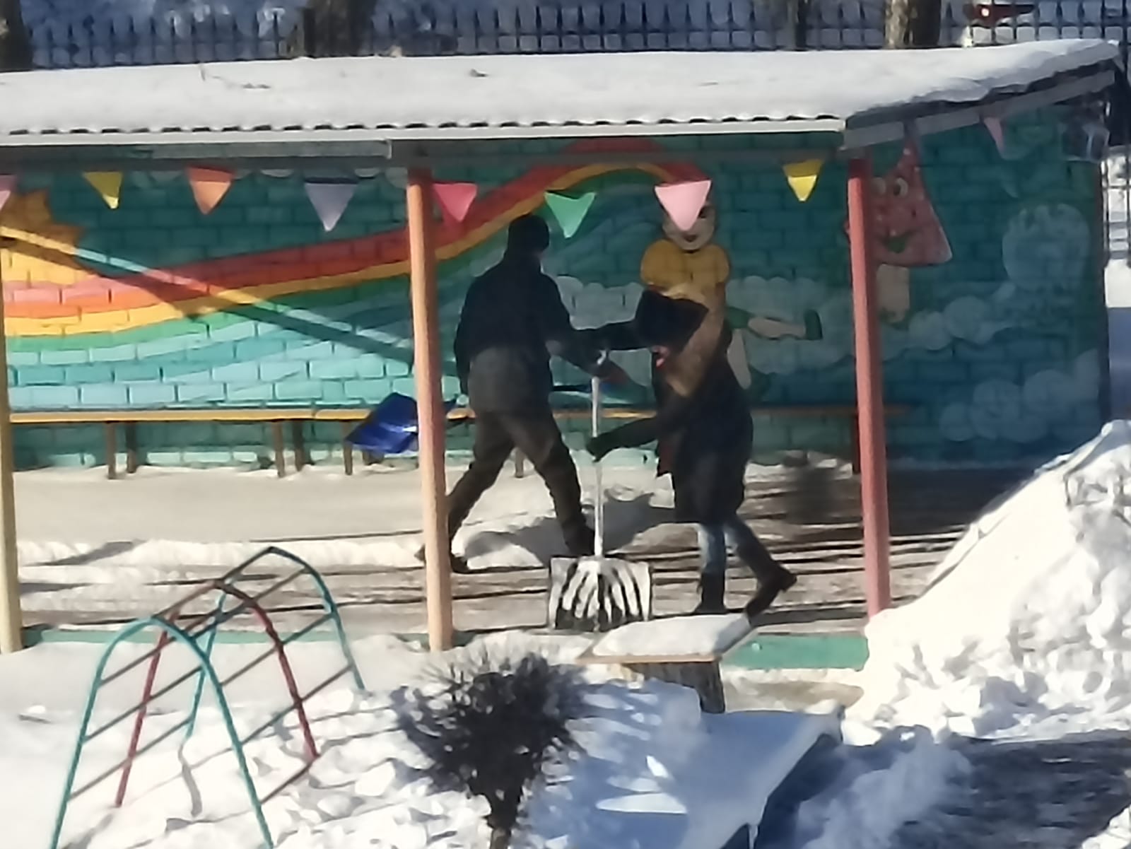 Большую помощь родители оказывают в очистке от снега игровых участков в зимний период. |