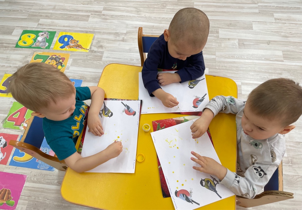 В рамках реализации экологическое воспитание детей в ГККП "Ясли-сад№3" в младшей группе "Радуга" мы стараемся пробуждать в детях интерес к живой природе, воспитываем любовь к ней, учим беречь окружающий мир. Бережное отношение к природе необходимо воспитывать у малышей с раннего возраста. В холодное время года воспитываем желание помогать нашим братьям меньшим, к птицам в трудное для них время. Создать необходимые условия в группе по формированию целостного представления о жизни зимующих птиц. У детей недостаточно знаний о зимующих птицах и нет навыка в умении подкормки птиц в зимнее время года. Мы предложили нашим детям покормить наших птиц зернышками, нарисованными самими малышами. Воспитатели: Ишбулдина Г.Н., Каримова Н. Х.