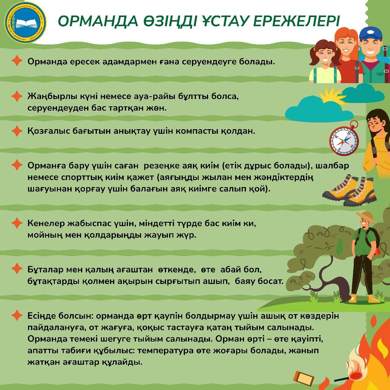 Жыл маусымының қай-қайсысының да өзіне тән ерекшеліктері болады. Әсіресе, жаз айларында адамдар еңбек демалыстарына шығып, балаларымен, достарымен бірге табиғат аясында серуендеуді, құмдауыт жағалауларда күнге қыздырынып, өзен-көлдерде суға шомылғанды жандары қалайды. Алайда, көбіне-көп түрлі табиғи апаттардан, кездейсоқ жағдайлардан сақтануды естен шығарып аламыз.