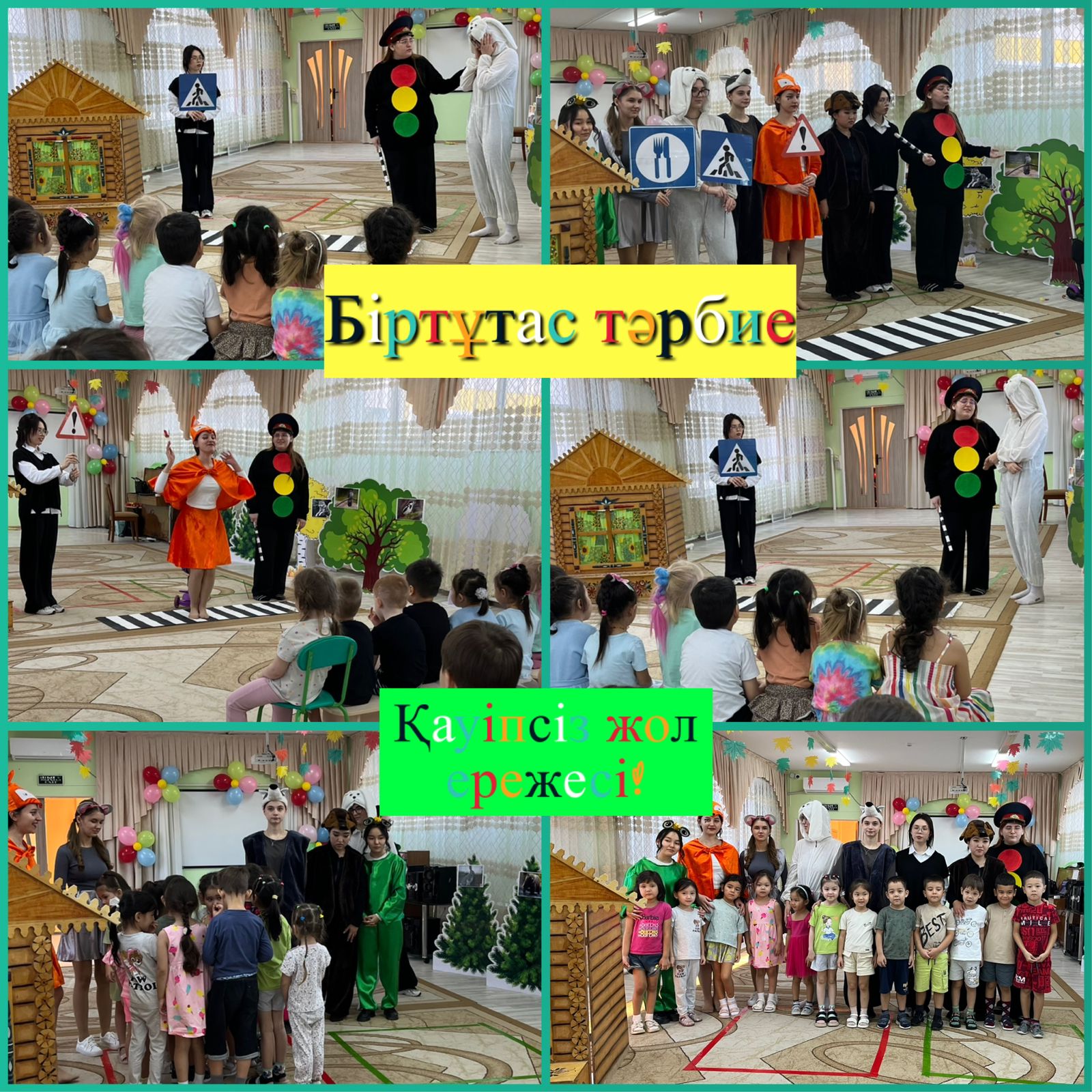 ”Біртұтас тәрбие” бағдарламасының негізінде балалар қауіпсіздігін қамтамасыз ету бойынша балаларды жол ережесімен таныстыру мақсатымен “Зерек” колледжінің студенттерінің қойылымын тамашалады.