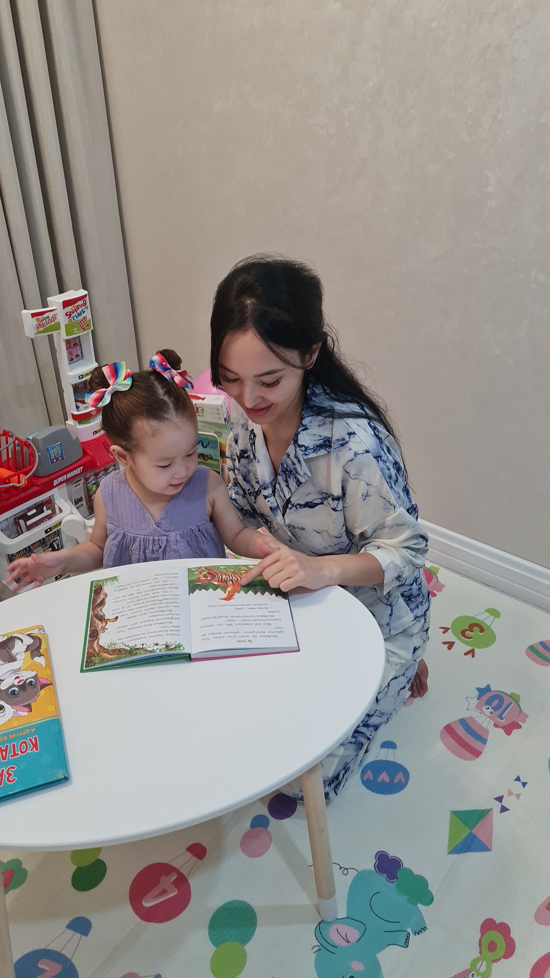 Мектепке дейінгі "Балапан" ортаңғы тобында ата-аналармен бірлесіп атқаратын жұмыс барысында "Баламен бірге кітапқа қызығушылықтарын қалай арттырамыз?" атты тапсырма берілді ата-аналарға. Кітап оқу үшін балам әлі кішкентай, бірақ мен оны кітапты сүюге баули аламын. Күніне 10-15 минуттай дауыстап оқимын, суреттерді талқылап, әңгіменің мәні мен мазмұнын талқылаймын, — дейді ата-анамыз. Баланың тілі тез шығып, сөздік қоры дамиды, бала сабырлы, төзімділікке үйренеді, кітапты сүюге және ұқыптылыққа тәрбиеленеді екен. Күнде кешке оқуға әдет қылғаныңыз жөн, — дейді ата-ана Сатыбалдина Асем.
