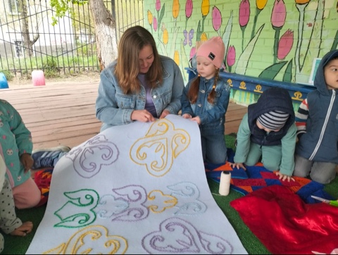 💫Осы максатпен балабақшамыздың ортаңғы "Көбелек" тобының ата -аналарымен бірлесіп әр түрлі сәндік кілемшелер мен шағын көрпешелерге ою-өрнек салу, кестелеу жұмысын ұйымдастыруды бастадық, бұл іс-әрекетіміз ата -аналар мен балалар ға жаксы әсер қалдыруда.