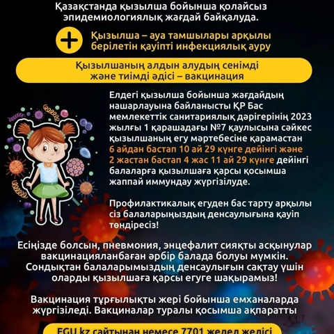 Қазақстанда қызылша бойынша қолайсыз эпидемиологиялық жағдай байқалуда