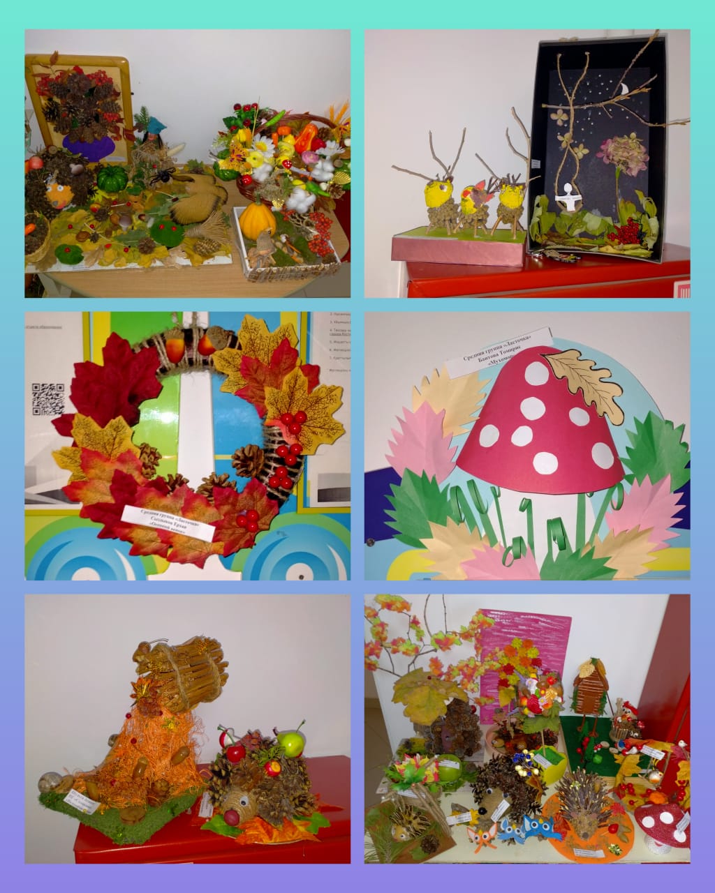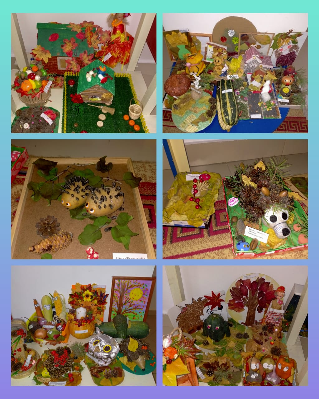 В своих работах участники использовали разные природные материалы – шишки, желуди, листья, веточки, овощи, фрукты, ягоды. На выставке были представлены лесные композиции, осенние сказки, игровые ситуации, игрушки. В каждой работе прослеживалась творческая индивидуальность и фантазия каждого ребенка. Все работы оригинальны, неповторимы и интересны.