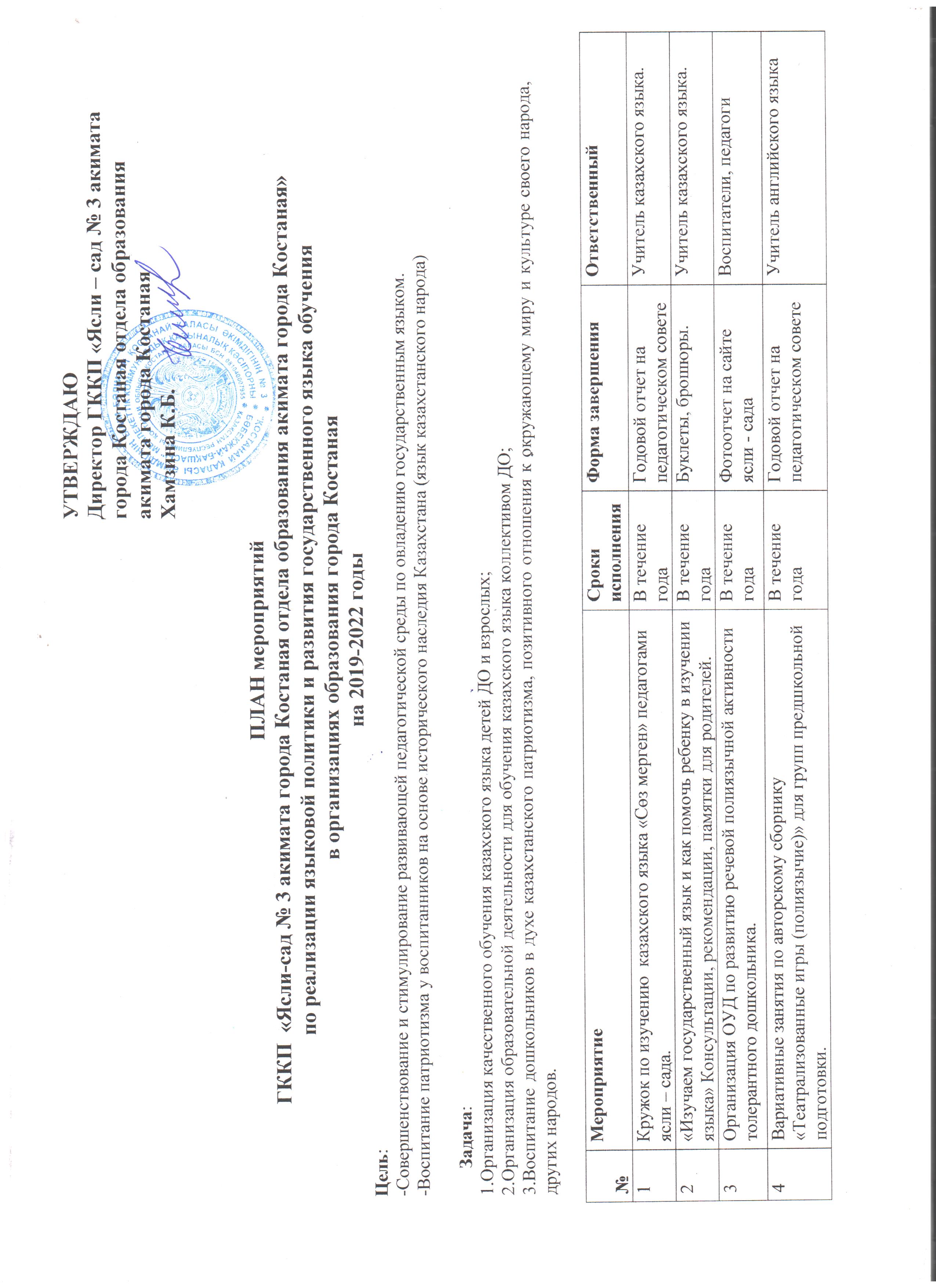 Коммунальное государственное казенное предприятие «Ясли-сад № 3» отдела образования города Костаная» Управления образования акимата Костанайской области