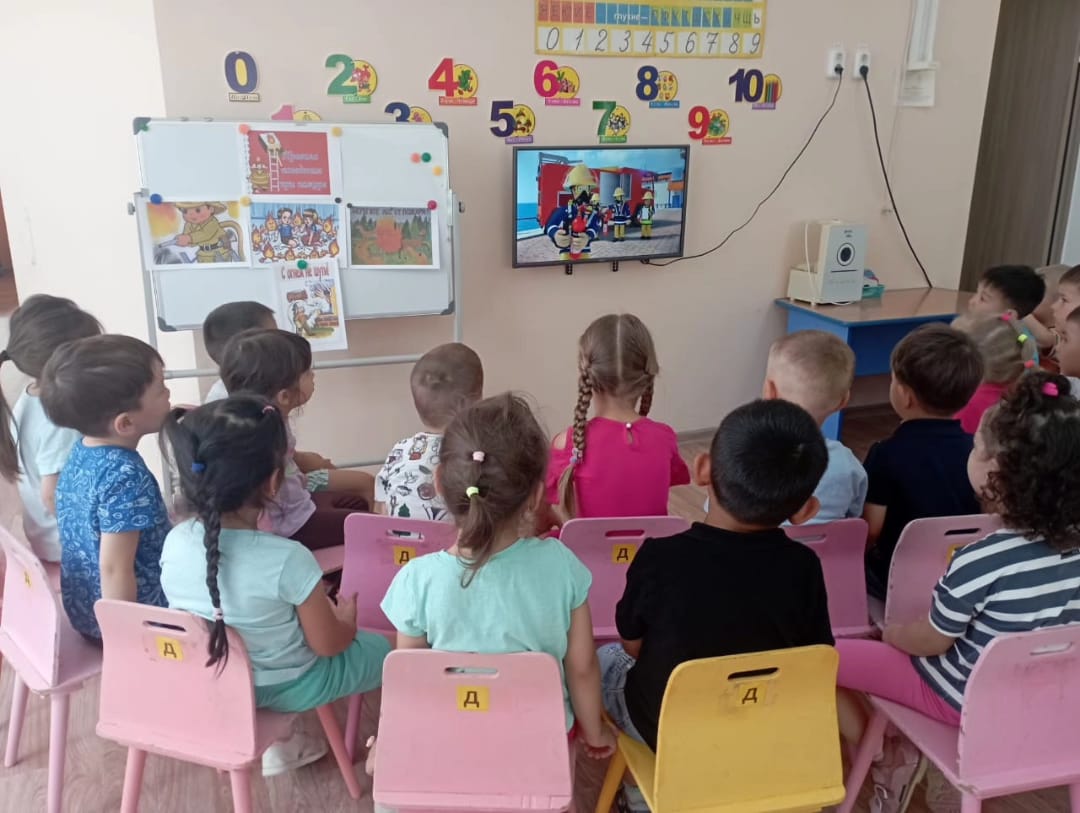 Сегодня в группе "Ромашка " была проведена беседа по пожарной безопасности, игра с лэпбуком и просмотрен мультфильм "Осторожно с огнём"