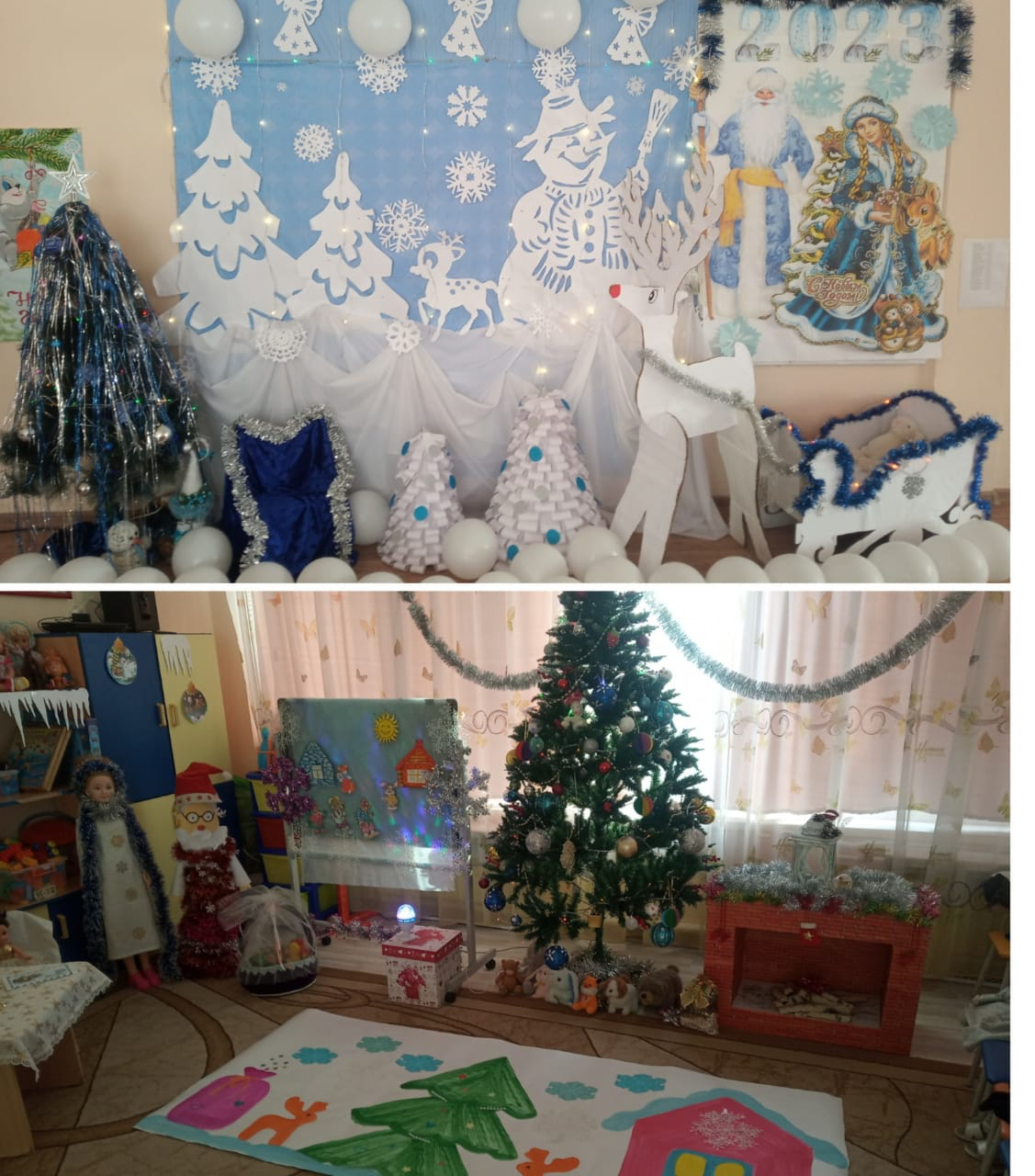 Дети и воспитатели украшали группы своими руками, сделав гирлянды, снежинки, оформив окна. Благодаря этому они получили огромное удовольствие от процесса совместной работы. Без внимания не остались и родители они с удовольствием помогали вырезать нам снежинки и украшения на окна. Все группы радовали глаз, в них царила зимняя, сказочная атмосфера. И как же приятно было осознавать, что такую сказку мы создали все сообща и своими руками.