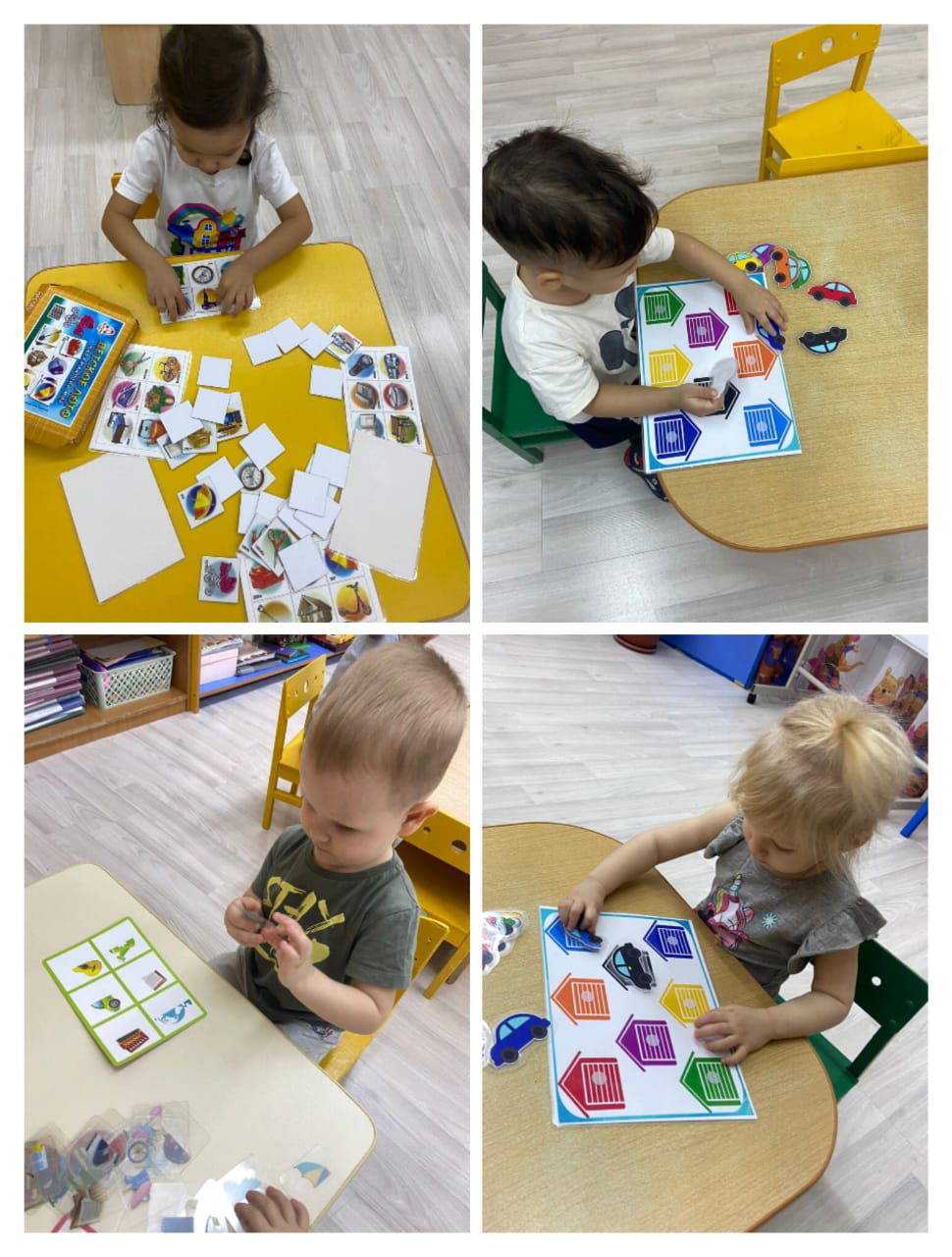 В младшей группе "Ласточка" дети любят играть в такие игры, как: «Дикие и домашние животные», «Найди гусеницу»; игры с прищепками разных цветов, «Чудесный мешочек». Игры с разрезными картинками и складными кубики, на которых изображенный предмет или сюжет делится на несколько частей.