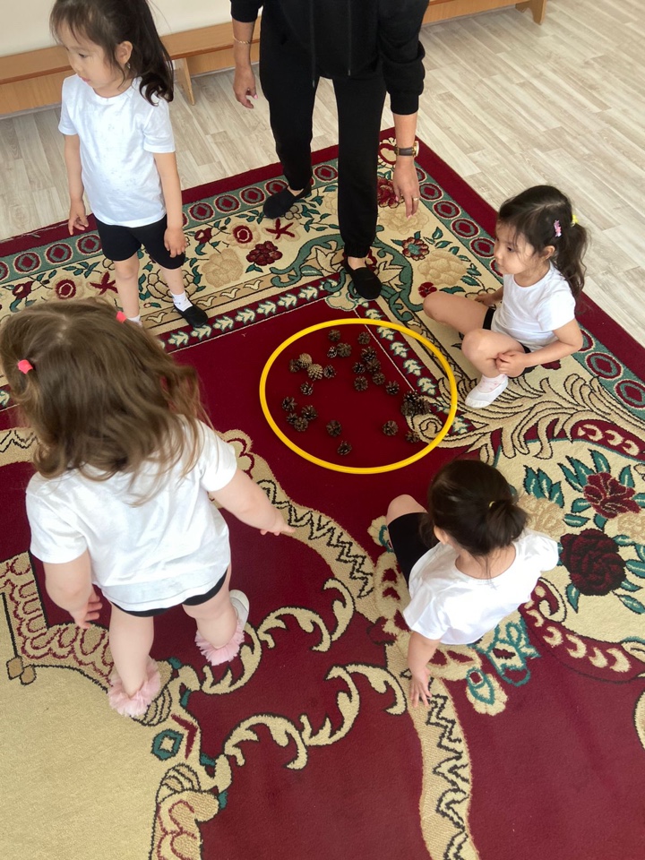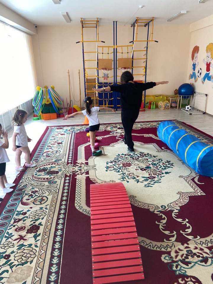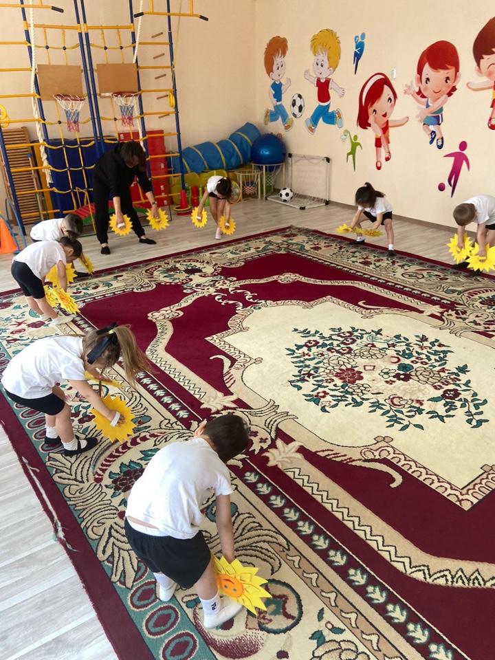 Цель: Развивать эстетические чувства детей, художественное восприятие на музыкальные произведения; физические качества такие как: быстрота, ловкость, умение работать в команде.